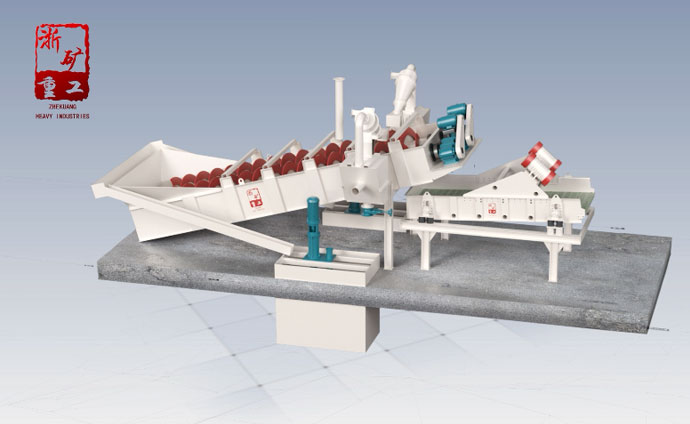 LX砂石洗選機(jī)系中螺旋洗砂機(jī)利用物料不同粒度和密度的顆粒在流體中具有不同的沉降速度的特性——粒度細(xì)、密度小的顆粒沉降速度慢;而粒度大、密度大的顆粒沉降速度快,將粉塵和雜質(zhì)與砂分離開來。并在螺旋片的均勻攪動下,達(dá)到濾水去雜、提升輸送的目的。